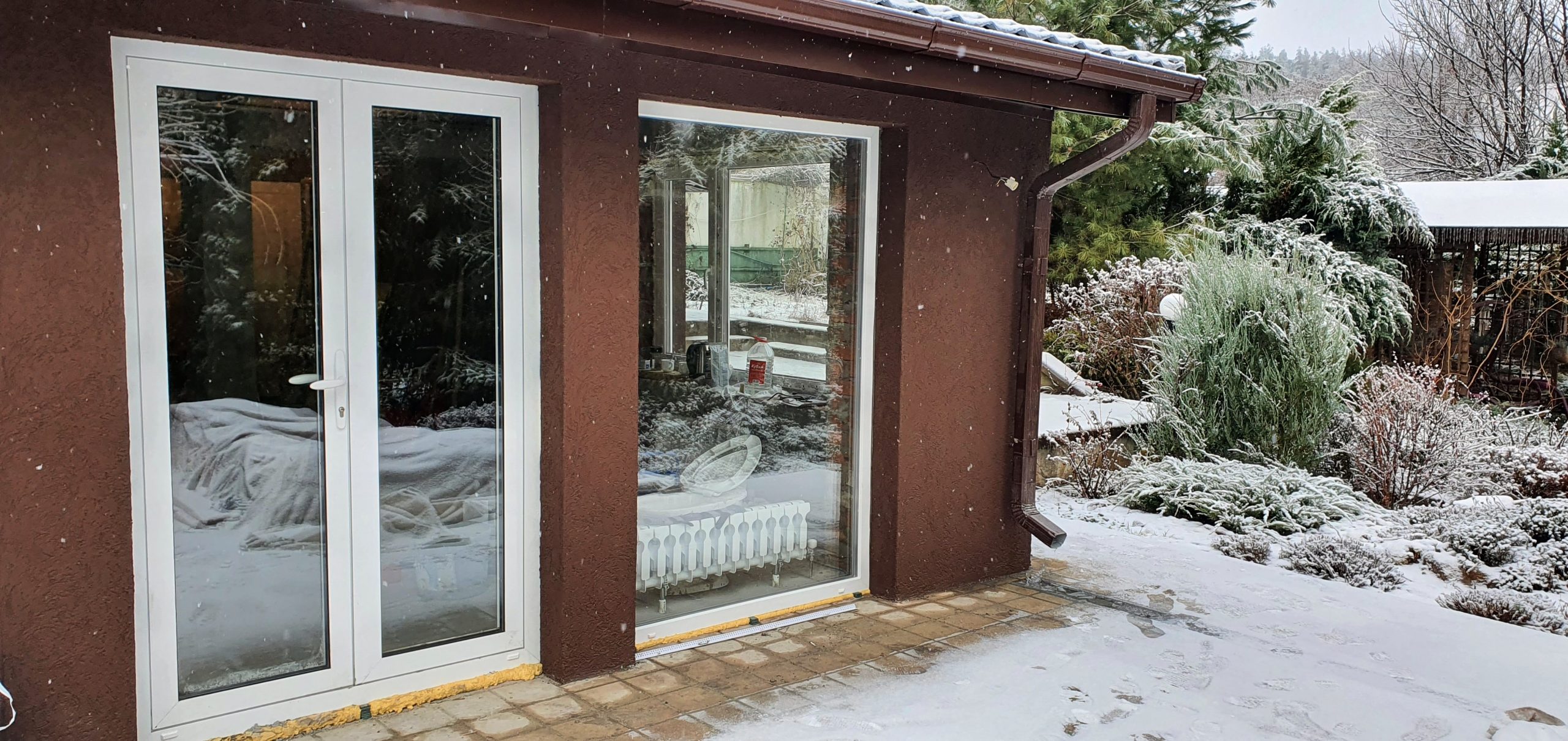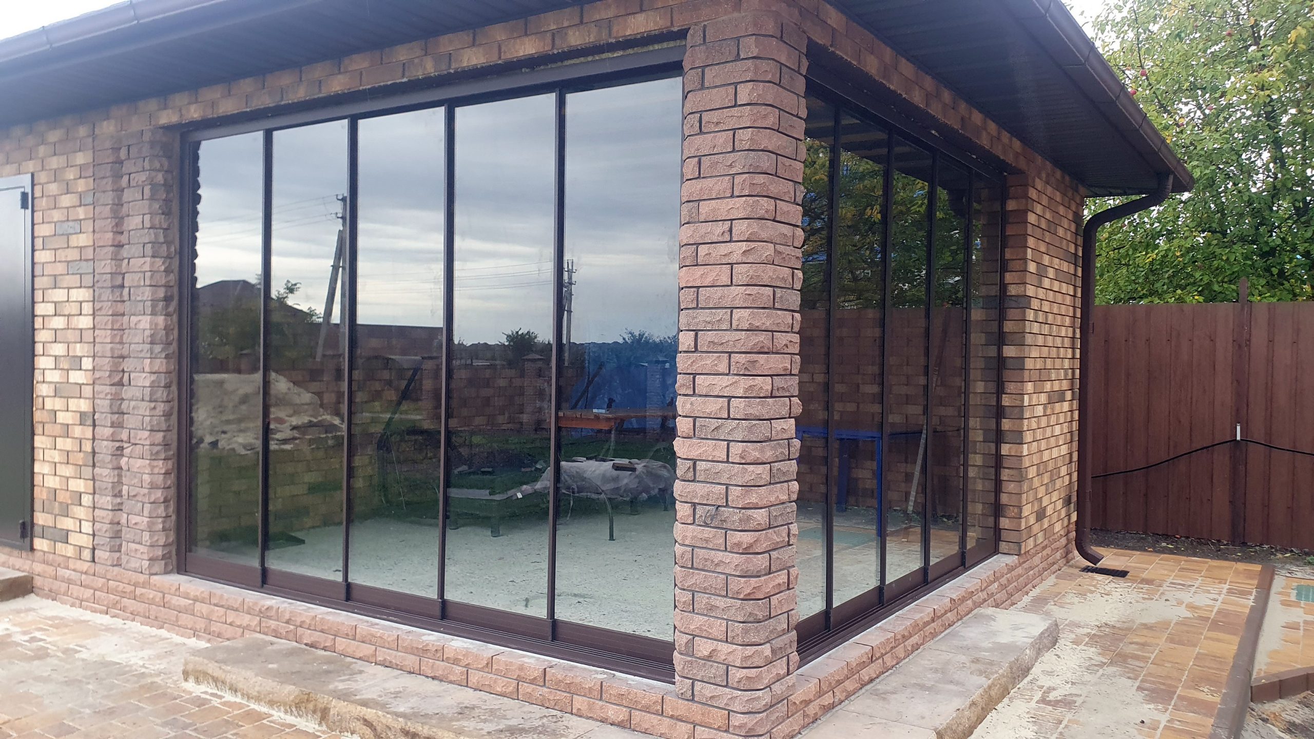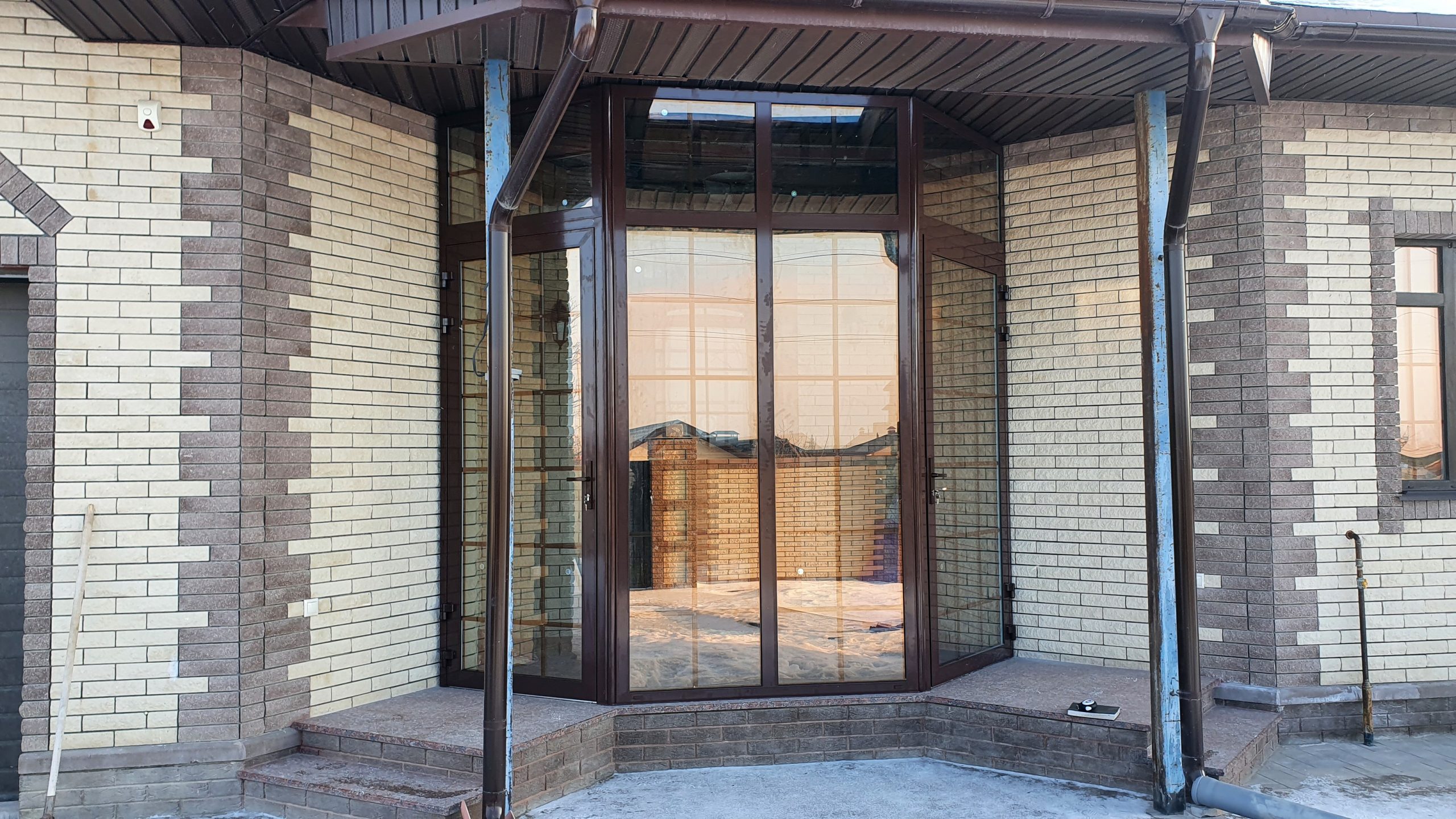Делали остекление в беседку и по рекомендации продавца взяли двери из холодного алюминия. Двери стеклянные, две створки распашные широкие, летом постоянно открыты, похолодало или дождик — закрыли. Очень удобно и красиво. Мы довольны на все 100%